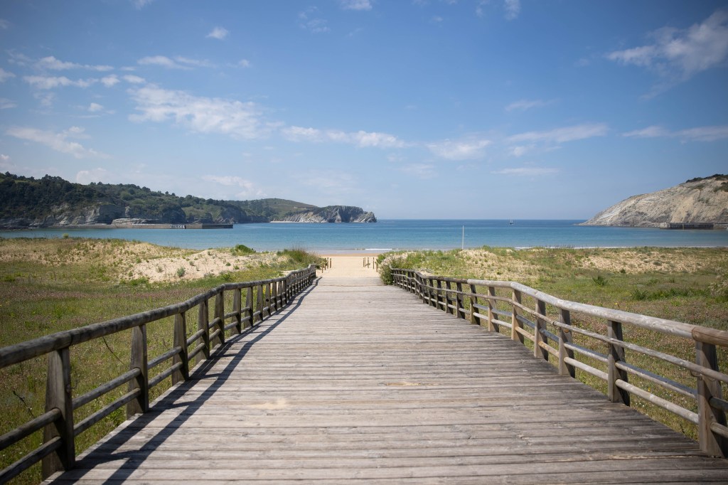 До пляжа добираться примерно 10-15 минут. По пути есть продуктовый Eroski, можно купить какой-нибудь провизии и устроить пикник, у пляжа есть специальная для этого зона. По карте тут как бы два пляжа, Hondartza и Gorliz, но по факту я бы сказала, что там общая береговая линия с приятным светлым мелким песком. Пляж общественный, лежаков и зонтиков нет, но очень чисто. Рядом есть туалеты и небольшие ларьки, часть из которых пока закрыта в не сезон. Поскольку здесь небольшая бухта, сильных волн замечено не было.