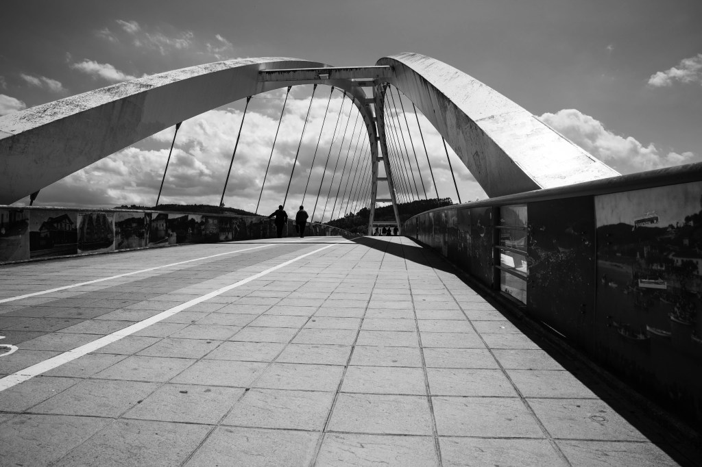 Изначально кажется, что едешь в какое-то Богом забытое место: пассажиры потихоньку растекаются по станциям, и до Plenzia едет все меньше и меньше народу, но на самом деле там довольно оживленно. Совершенно безопасно путешествовать в одиночку. Станция располагается на набережной реки. Тут есть и отели, и ресторанчики, а встречает путешественника мост Калатравы.