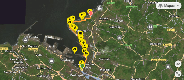 Я начинала маршрут от метро Algorta, но можно начать и со станции дальше, с Bidezabal. Выходите и строите маршрут в сторону океана, там будет понятно, где дальше тропа, она тянется прямо по побережью.