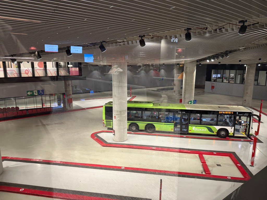 Автобус в Биарриц отправляется с главного автобусного вокзала Bilbao Intermodal, станция метро San Mamés. Из метро на улицу выходить не надо, главное, идти по указателям по туннелю к вокзалу. Рейсы в Биарриц выполняет FlixBus. Это рейсовый автобус Bilbao-Rennes (маршрут 711), который делает в Биарриц короткую остановку. Других вариантов добраться на общественном транспорте без пересадок я не нашла. Билеты туда-обратно обошлись мне в 27 евро. Если покупать сильно заранее, можно купить +- за 20. Автобусы комфортные и чистые, все четко и по расписанию, иногда даже слишком: автобус пару раз уезжал на 5 минут раньше, чем должен был. Не знаю, считали ли пассажиров или просто по умолчанию подразумевается, что все пришли за 15 минут, как написано в билете. По пути автобус делает одну остановку в Сан-Себастьяне (и одну у кафетерии), где прибывает основная масса пассажиров: от Бильбао до Сан-Себастьяна автобус ехал почти пустой.